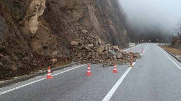 Zbog kiše koja je padala tokom noći ili još uvijek pada saobraća se po mjestimično mokrom i klizavom kolovozu, a povećana je i opasnost od odrona.