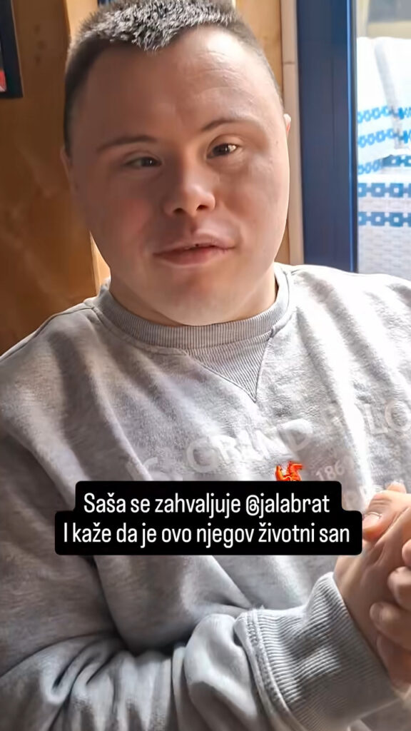 Dirljiva priča iz Tuzle ponovo je dirnula cijeli region. Saša Šunjka, mladi konobar iz Kluba “Zmajevo srce” i osoba s Down sindromom, svojim je videom izazvao talas emocija i oduševljenja – pozvao je poznatog repera Jalu Brata da zajedno snime pjesmu.