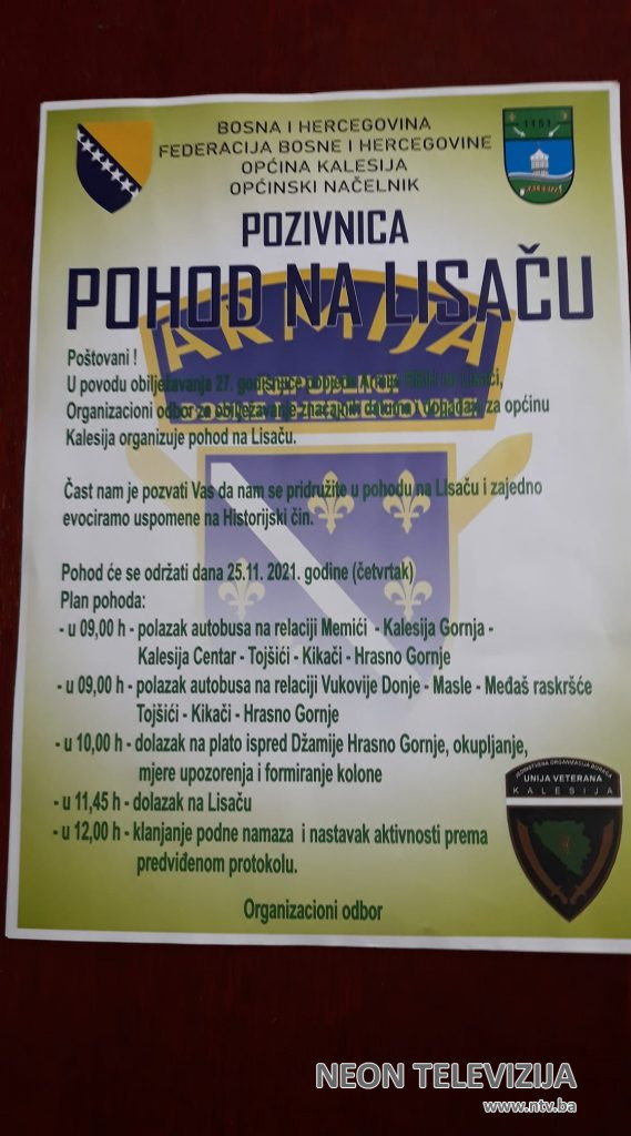 Organizacioni odbor za obilježavanje značajnih događaja i datuma za općinu Kalesija organizuje pohod na Lisaču povodom obilježavanja 27.godišnjice pobjede Armije RBiH na Lisači.