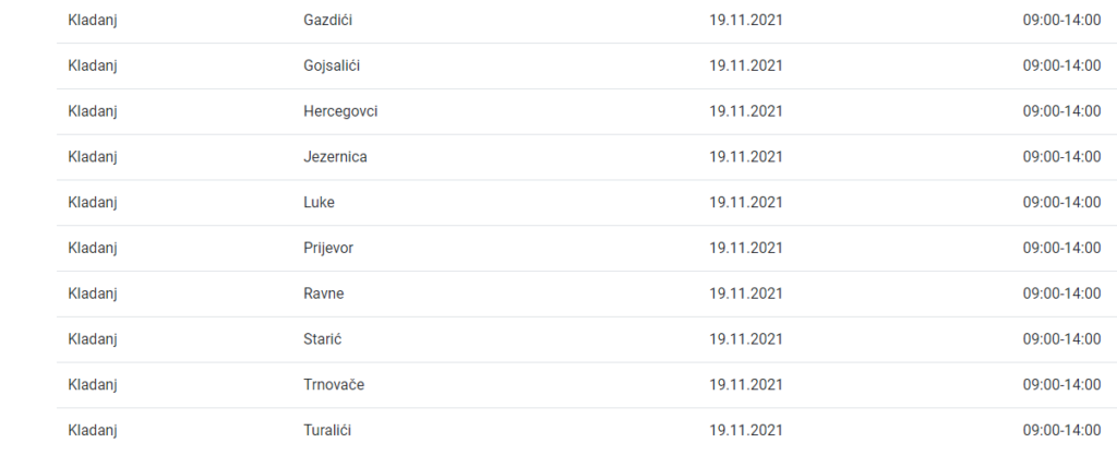 Do prekida u napajanju električnom energijom doći će sutra u Općini Kladanj u periodu od 9 do 14 sati u naseljenim mjestima Gazdići, Gojsalići, Hercegovci, Jezernica, Luke, Prijevor, Ravne, Starić, Trnovače i Turalići.