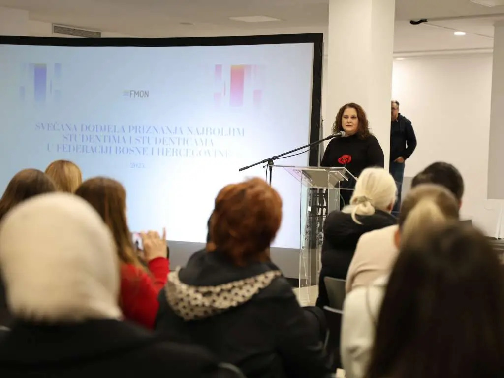 – Zaista mi je čast i ponos što mogu uime Federalnog ministarstva obrazovanja i znanosti uručiti priznanja za 94 najbolja studenta u Federaciji BiH. Ovaj iznos od po 2.765 KM pokazuje koliko cijenimo trud i uspjehe naših studenata. Danas, na Međunarodni dan studenata, jasno pokazujemo koliko je važno ulagati u znanost, obrazovanje i povezivanje s akademskom zajednicom, te pružati mladima prilike za mobilnost i razvoj na europskom tržištu obrazovanja – istaknula je ministrica.