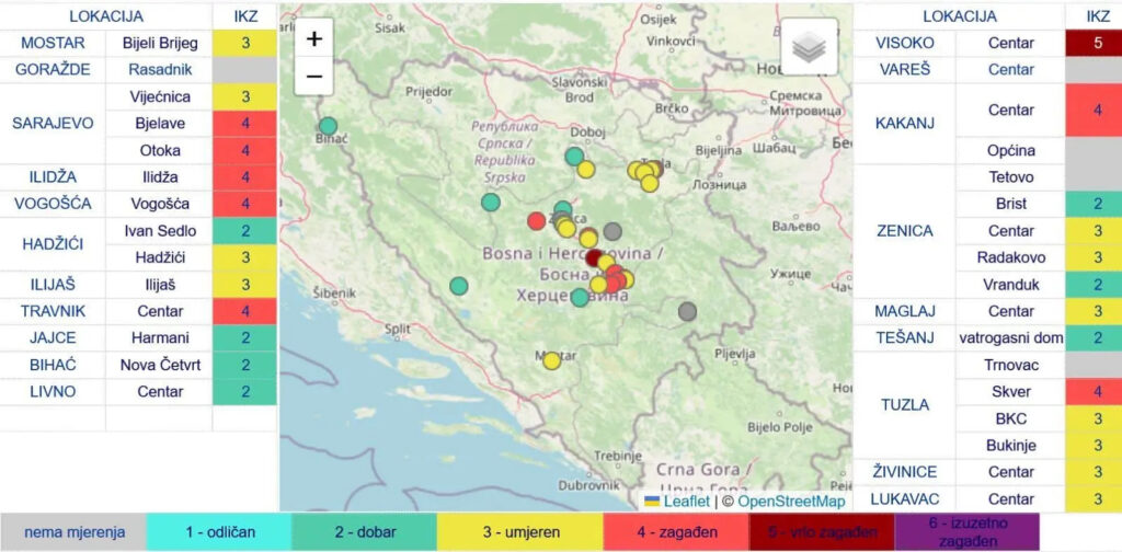 Novi Indeks kvaliteta zraka u FBiH od danas je u primjeni i predstavlja modernizovan način informisanja javnosti o stanju zraka, zasnovan na metodologiji Evropske agencije za okoliš. Federalni hidrometeorološki zavod zvanično provodi izračune prema ovom standardu, čime se osigurava jedinstven i uporediv prikaz kvaliteta zraka na području Federacije.