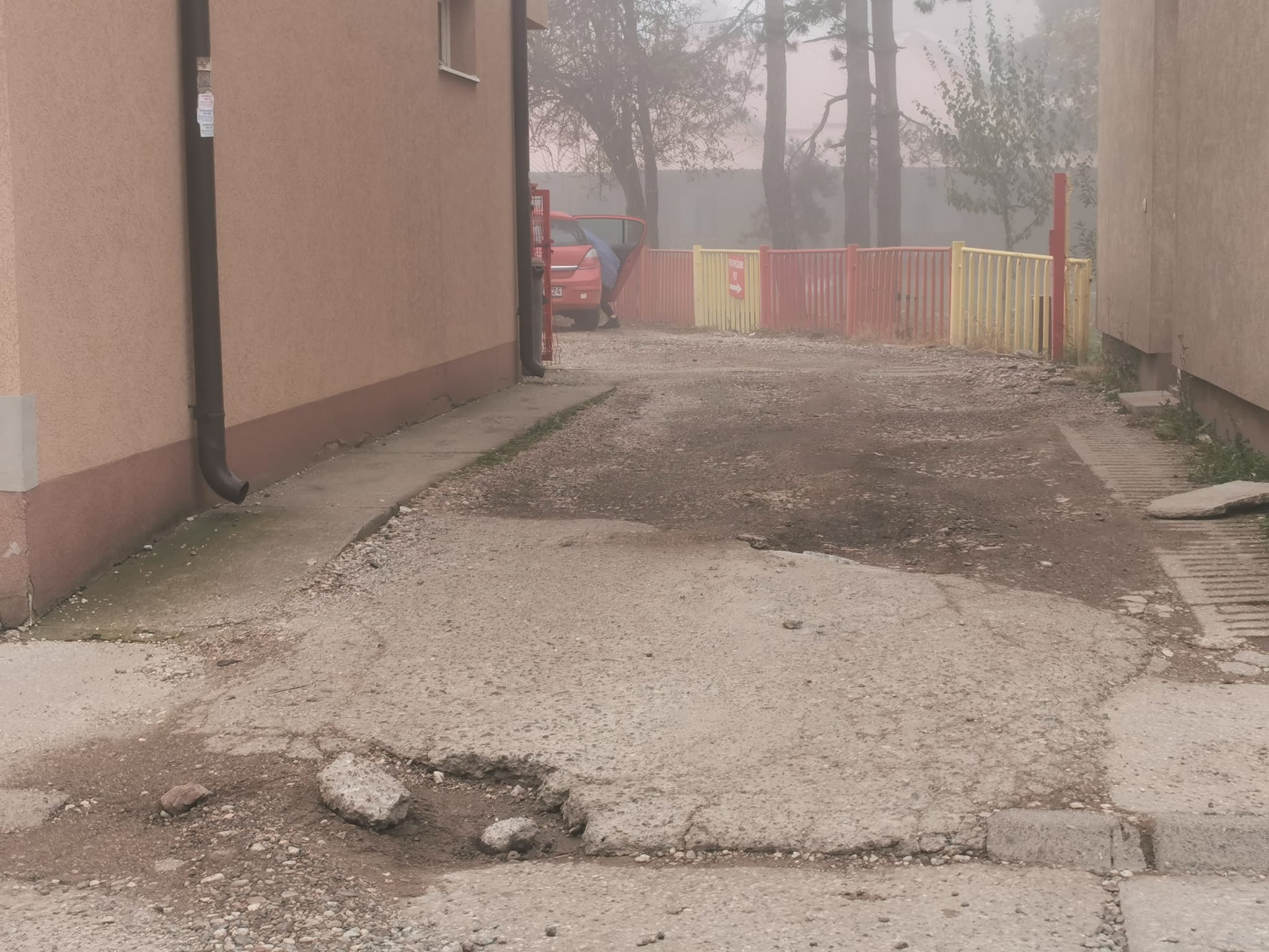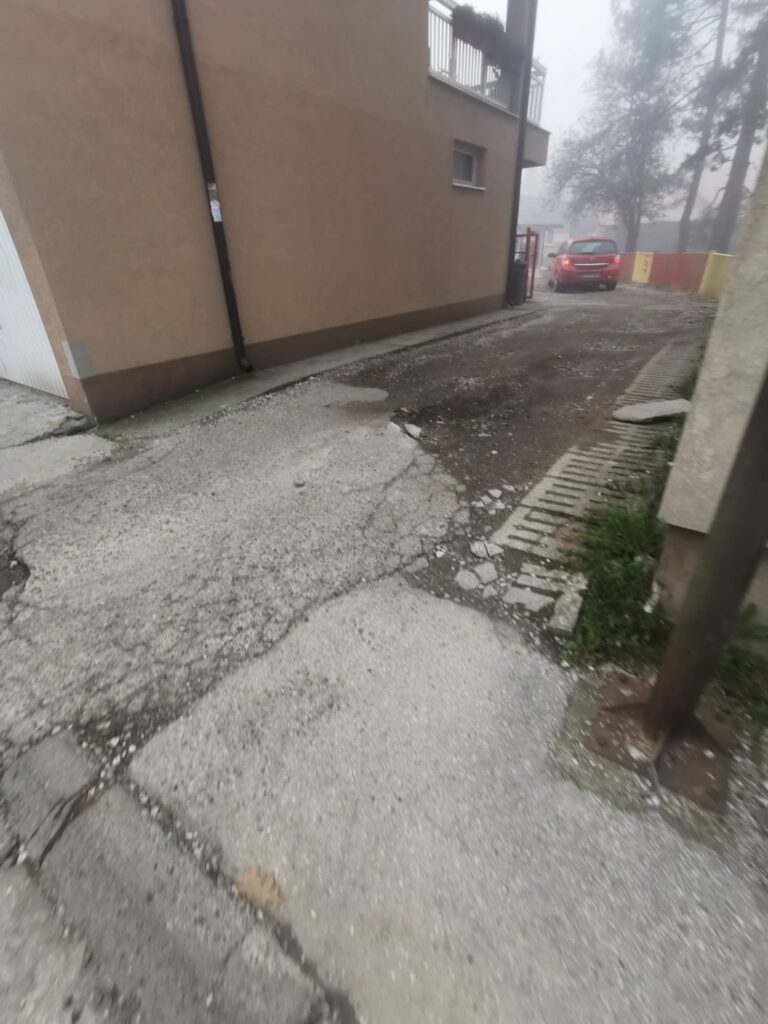 Prilaz Dječijem obdaništu Živinice iz pravca Školske ulice, a koji se nalazi između dva stambena objekta, blago rečeno, je u jako lošem stanju.